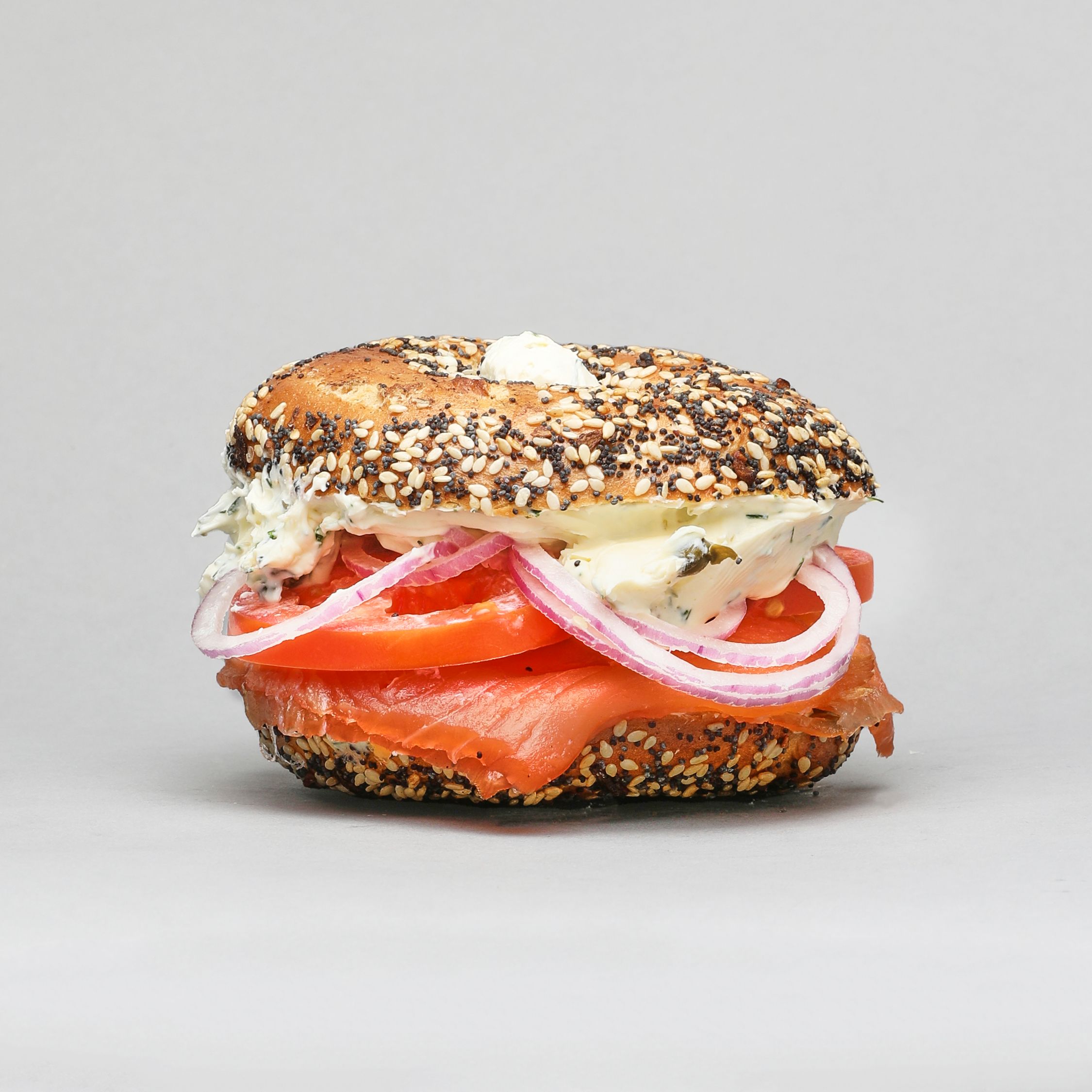 - Smoked salmon, dill & caper cream cheese, tomato & onion18.0