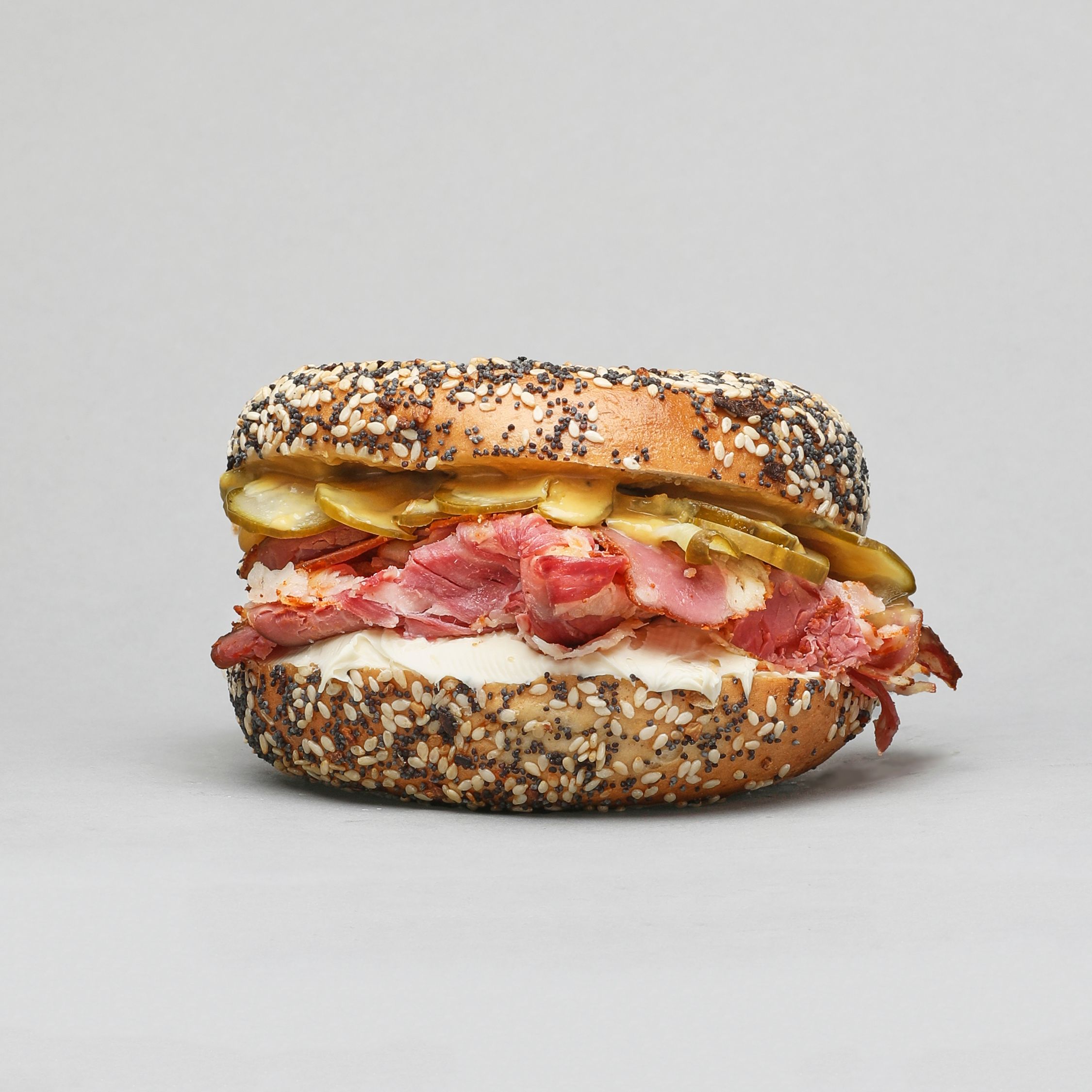 - Brisket pastrami, hot ‘n’ sweet mustard, cream cheese & pickles17.0