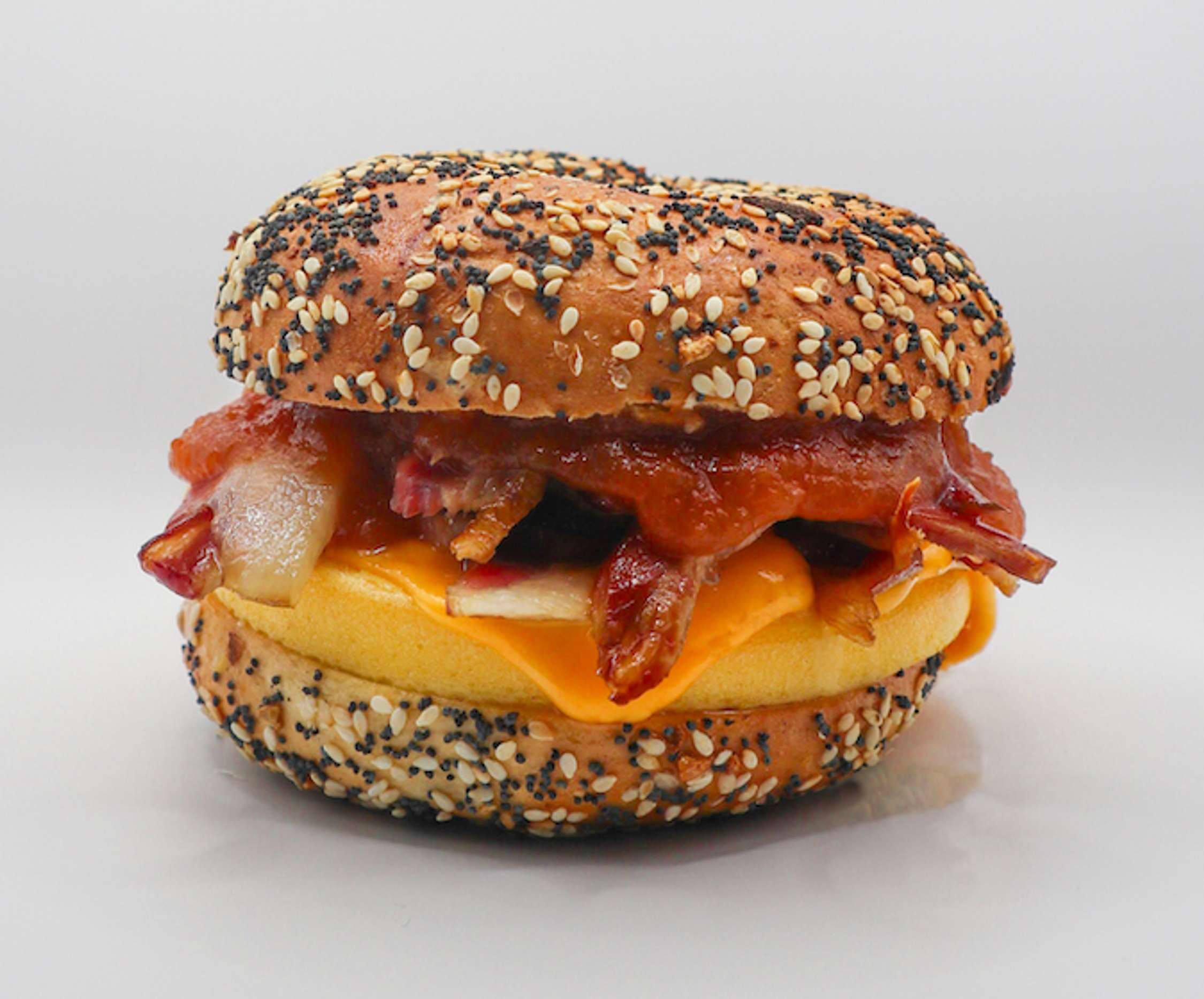 - Brekky Bagel: Steamed egg, streaky bacon, hi-melt cheese, butter & house made ketchup 15.0